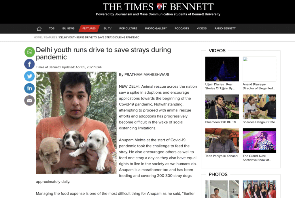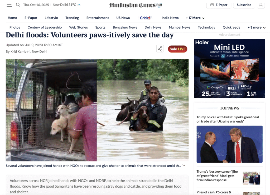 Serves over 200,000 meals to strays across Delhi/NCR with volunteers.